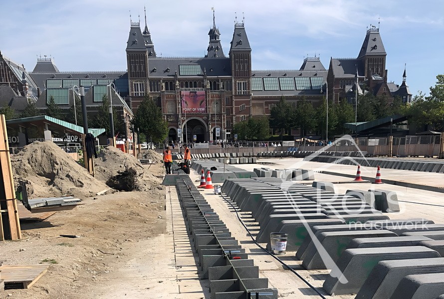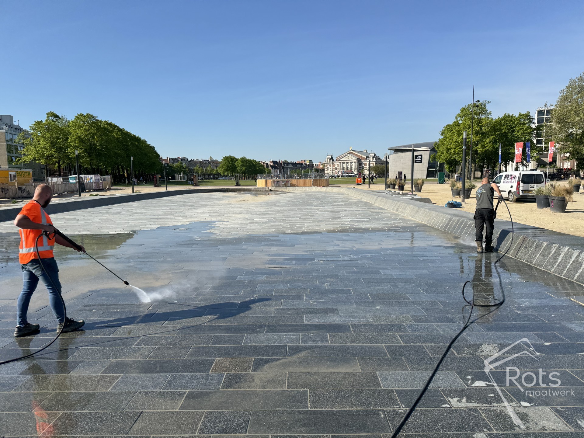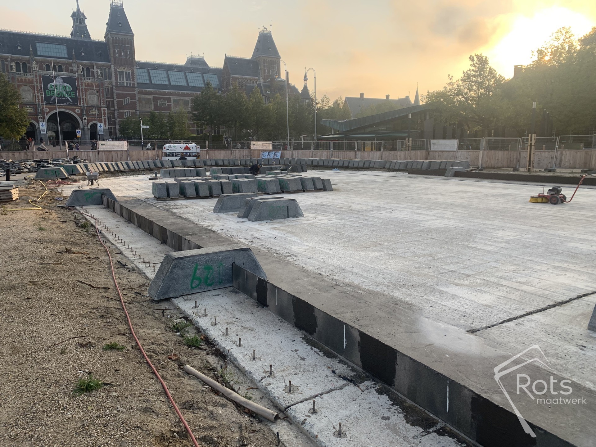 Welkom bij de renovatie van de waterspiegel op het Museumplein in Amsterdam, één van de meest herkenbare ontmoetingsplekken van de hoofdstad. Gelegen tussen het Rijksmuseum, Van Gogh Museum en het Stedelijk Museum vormt de grote, strakke waterpartij al decennia een rustpunt in een intensief gebruikt cultuurgebied. Door lekkages en technische problemen stond de vijver lange tijd leeg. De gemeente Amsterdam besloot tot een grondige renovatie waarbij duurzaamheid, levensduur en behoud van het karakteristieke uiterlijk centraal staan. Rots Maatwerk won de aanbesteding voor de complete renovatie van dit prestigieuze project.
