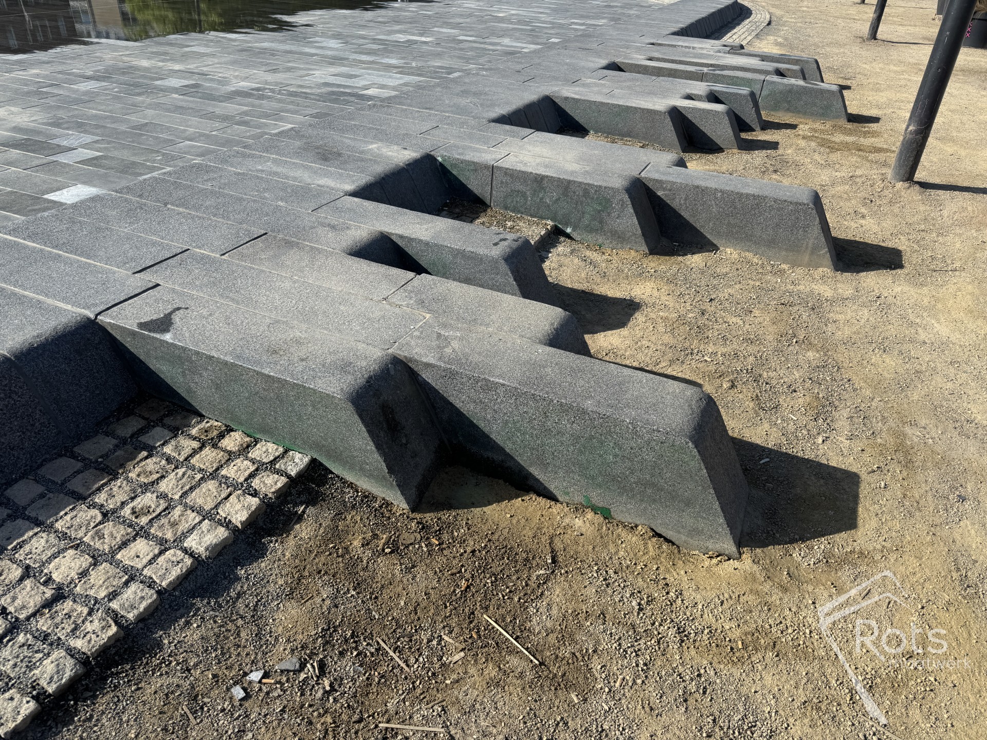 De natuurstenen afwerking is een bepalend onderdeel van de uitstraling van het Museumplein. Daarom zijn alle elementen met grote zorg behandeld en waar mogelijk hergebruikt. De nieuwe detailleringen sluiten naadloos aan op de oorspronkelijke vormgeving en versterken het minimalistische karakter van de waterspiegel. Door het vakmanschap van onze steenspecialisten heeft het plein zijn herkenbare, rustige en hoogwaardige uitstraling volledig terug.