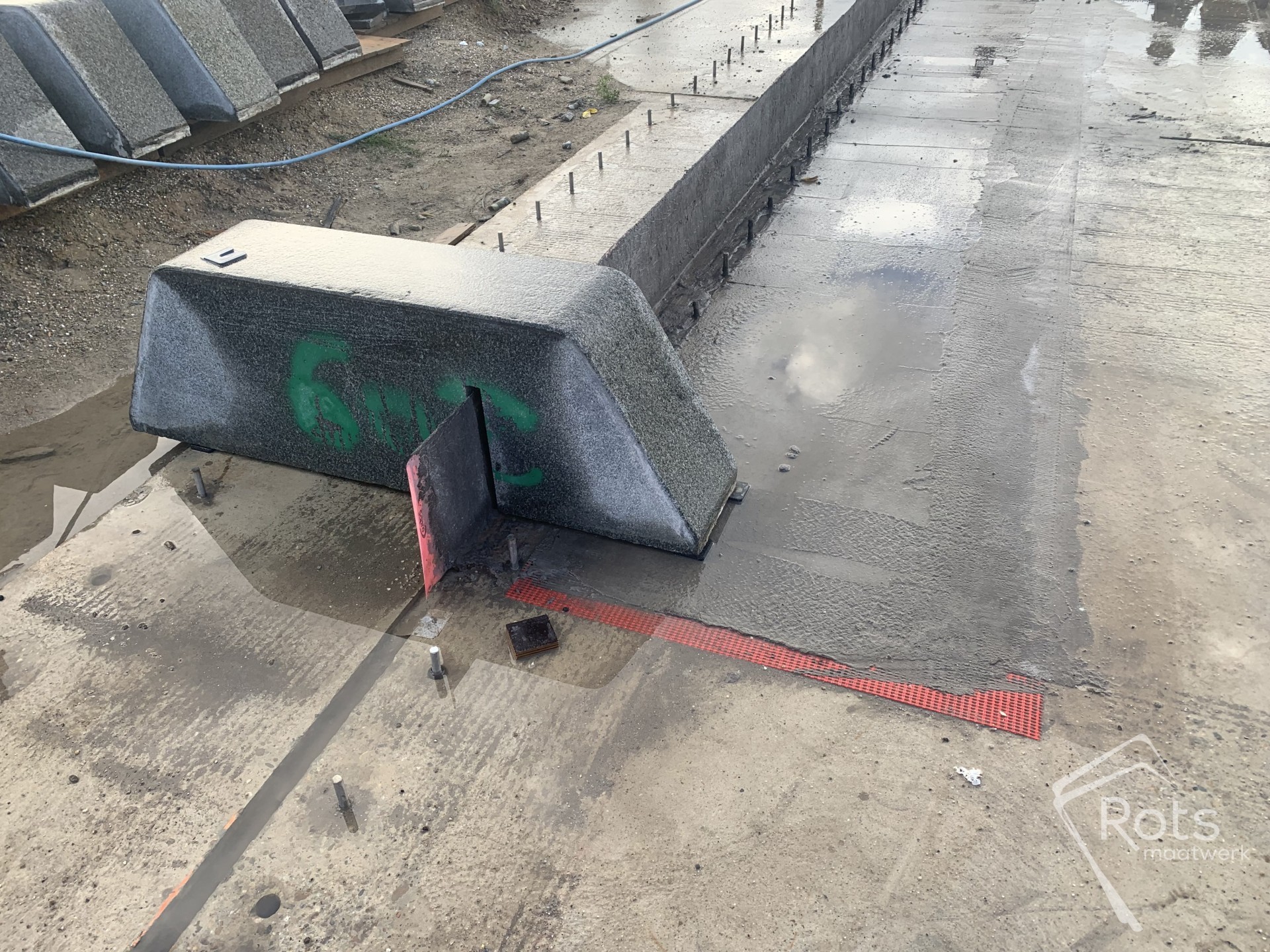 Na demontage werd de betonnen fundatieplaat volledig schoongemaakt. Oude doken, mortelresten en lijmresten zijn verwijderd om een vlakke en hechte basis te creëren. Om de doorstroming van het water te verbeteren, zijn nieuwe leidingen aangebracht onder de betonvloer. Hiervoor is het beton plaatselijk opengezaagd, waarna de leidingen zijn geplaatst en de vloer opnieuw is dichtgestort.